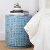 Beachy breezes meet contemporary class with this one-of-a-kind end table. Natural coconut shells are kissed with a patina of your choice, then arranged into a mosaic pattern. The standout shape of this table breaks up tired spaces, making it the perfect perch for books of art and stylish décor. The distressed look adds texture and interest to your space. Variations from natural processes and materials mean each piece is as unique as your style. Pair with a comfy sectional and loveseat for an airy space to enjoy the little moments every day.