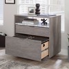 Add convenient file storage to your space at home with a contemporary filing cabinet. This 2-drawer lateral file cabinet from the East Rock collection provides needed storage, and it looks good while doing it. The spacious lower drawer holds letter or legal size hanging files to keep your most important documents organized and easy to access. The upper drawer of this legal size filing cabinet features a louvered front and gives another useful area for storing smaller items like office supplies or paper. Both drawers open and close on full extension metal slides. The open area of the lateral file cabinet with shelf adds a faux white marble accent plus additional storage for framed photos or other home décor. Use this shelf and the top surface to display what you wish. For added safety, a patented interlocking mechanism allows only one drawer open at a time. It's finished on all sides in Ashen Oak, so this modern 2 drawer filing cabinet will look complete however you configure the room.