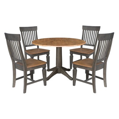 This mid century kitchen table set consists of 3 pieces and is specifically designed to elevate The charm and style of your dining area. The dining table Set Includes a round table with an expandable drop-leaf top, supported by 4 sturdy legs, and 2 chic modern dining chairs. The design seamlessly combines both traditional and modern elements, featuring a mahogany dinner table paired with Platinum Gray parson dining chairs that seamlessly blend with various interior decor styles, ranging from classic to contemporary. Constructed from high-quality rubberwood, known for its durability and resistance to wear and tear, This kitchen table set is built to last while preserving its attractive aesthetics.
