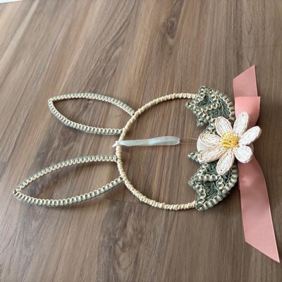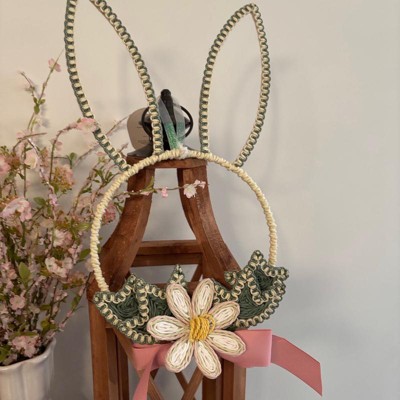 This is a really cute bunny wreath. I like the hand made feel and texture it has. It is a great size too for my small home. I do with the bow was tied not glued togther. It is hard to get the semitry my OCD needs but that is just my pet peeve. Such a great price for those of us on a budget but want cute things.