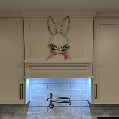 This is a cute and adorable wreath that is shaped like a bunny. This wreath is perfect to add to your Easter collection. It is lightweight and is made of a nice pastel color. It can easily be hung on your front door or placed on a countertop or table. I love that you can use it as decor. I have it on my entryway table and it is super cute.