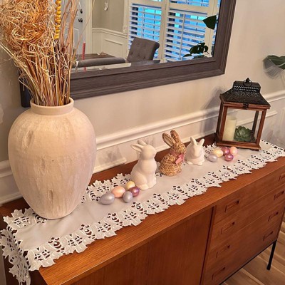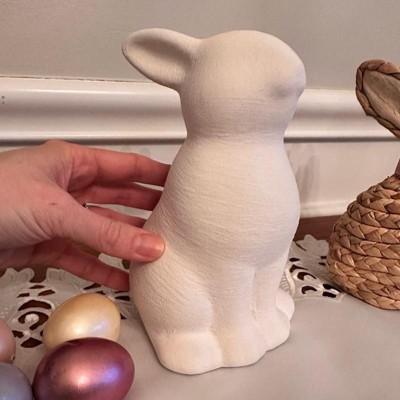 [This review was collected as part of a promotion.] I ordered this cute bunny to add to my decor in the spring. I ordered this one as well as the other matching bunny so that I could have a set. The bunny is a nice size and fills the space well on my sideboard table. I was a bit surprised by the texture on the bunnies, they remind me of an outdoor pot texture. The white color is nice and simple, which helps this bunny go with almost any home decor.