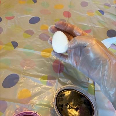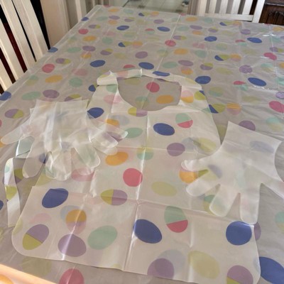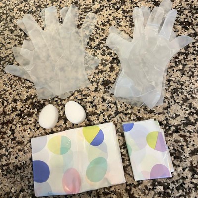 I was happy with this cleanup kit. Dyeing eggs is a fun tradition but it can be stressful trying to contain and clean up the mess, especially with little ones! This kit comes with a tablecloth, gloves, an apron, and sponges. It was fun having a festive tablecloth and the gloves help to not stain your hands. The apron is not the most helpful because it doesn’t protect your sleeves and it’s very thin and flimsy but is ok for the price. I would recommend this kit!