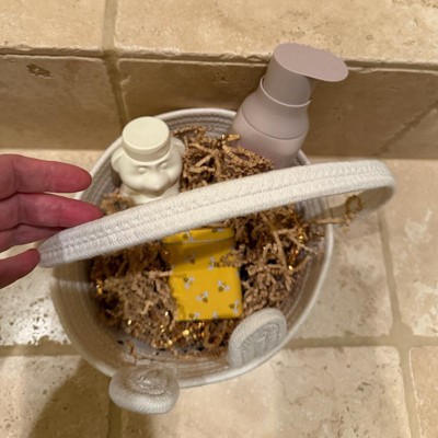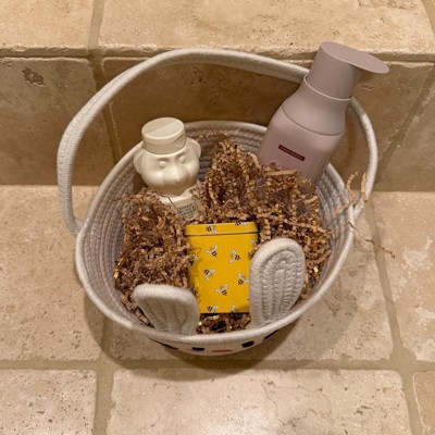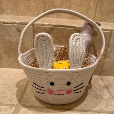 [This review was collected as part of a promotion.] This is simply the sweetest Easter basket I’ve seen in ages. The super cute bunny face on the white woven rope basket is sure to be a hit this year. It’s not very big but will fit everything I plan to give to my grown and flown kids. It is great quality however unless the contents are balanced, the handle is off a bit on my basket so when I lift it, the heavy items falls out if not careful. I would strictly use this as a giving basket, not for collecting Easter eggs because they’ll fall out easily. It’s a great value for a quality basket and I plan to use after the holidays for decor.