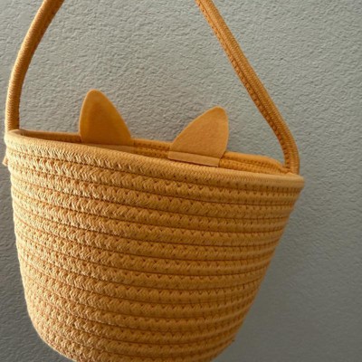 [This review was collected as part of a promotion.] Such a cute well made basket. Absolutely love the brown color and bunny ears! This basket was easy for my toddler to hold when empty but as it got full with eggs, it would keep flipping over/emptying because the handle was too long. Probably better suited for a 7-8 year old. Makes a cute gift basket too!