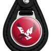 - QUALITY MATERIAL: Our durable round keychain is crafted from leather with a glossy resin-topped emblem featured design shown on one side. Approximately 1.5" (3.8cm) x 2.5" (6.4cm) in overall size, emblem is 1" (2.5cm)..