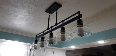 [This review was collected as part of a promotion.] This light fixture has transformed the look of out kitchen. We recently renovated our kitched and intalled this light in place of two pendant lights over the island. This light makes the whole space appear more upscale and natural. The combination of chrome, glass and wood tones tie the space together with the floors and cabinets. Installation was fairly straightforward from assembly to hanging it (although an extral pair of hands make the final step of mounting it much easier). My only negative comment about the construction of the light is that they give you two open chain links to attach the light to the mounting plate but it is too difficult to bend them back into place (a large pair of pliars are needed) without some sort of damage being seen. I opted to pick up some resealable chain links with a similar finish from a local store. Everything about this light is high quality and it has become the focal point of our kitchen.