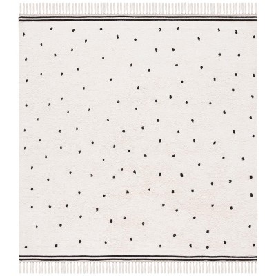 Easy Care W/ Tassel ECR210 Machine Washable Hand Woven Indoor Accent Rug - Ivory/Black - 4'x4' - Safavieh