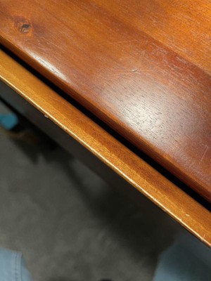 This was a beautiful desk for a while, but it has not aged well. The wooden desktop split beneath my computer as I was working today. The finish has worn more than I'd like along the edge of the desk as well. The beveled drawer edge was uncomfortable to rest my arms on, and directed dust and dirt into the drawers.
