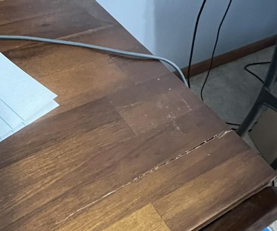 Horrible quality. The sides of the desk extend out too far so the drawers don’t even close. Top of desk has a major crack on it, and middle front sticks out too far for drawer to close, plus it is cracked. The back of the desk is flush with the top, so just looks like someone used cheep wood and no measuring tape to calibrate the front. Worse thing is we bought it in Feb to redo an office… and life prevented us from doing the office until now… Target refuses to refund since, even though it’s junk) it’s past 90 days.