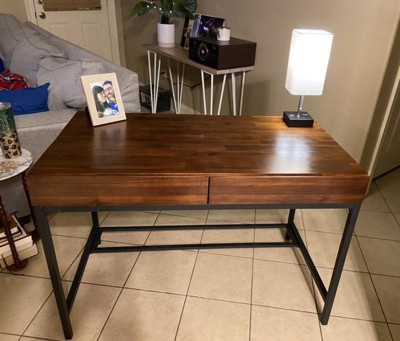 It's been 3 months, and doing pretty good! I got the desk to replace my old huge table. I do research with books and papers around me so I needed a huge table, but my new place didn't allow. Although it feels a little tight, it's actually perfect for a laptop, a notebook, a desk stand, and a stack of letter trays. The wood finishing is really nice, and I love the color and the weight it adds to my room. I love putting my feet up on the two metal parts, and it has been sustaining me pretty good! The drawers are spacious and super useful. Pulling out and pushing in feels smooth. The only thing is the design of the drawer. I think it's for the grip but it never closes tight so feels kind of incomplete. Maybe it's just me. I recommend getting a glass/acryllic cover with it. I already have one of two little holes that I made with the tip of scissors and etc. Overall, it's a great purchase!