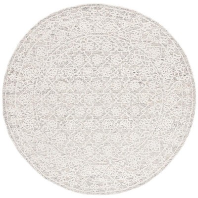 Shades of grey and ivory intertwine in a harmonious dance, forming an intricate floral design that will add a touch of organic beauty to any space. With its round shape and moderate pile height of 1/2", this rug is versatile enough to complement a variety of decors, from classic to contemporary.