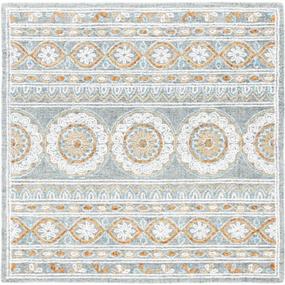 Elevate the elegance of your living space with our handcrafted 6' X 6' Square area rug, a superb blend of functionality and alluring design. Exuding a sense of timeless beauty with its grey and ivory hues, this rug boasts a traditional style that seamlessly integrates with both contemporary and classic decors.