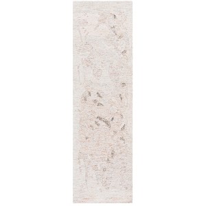 The beige background exudes a warm, inviting ambiance while subtle rust accents create an organic pattern that resonates with both modern and traditional decor. The distressed textural effect hints at vintage charm, making it a versatile choice for any room in your home. Whether placed in your hallway, entryway, or alongside your bed, this runner adds a touch of sophistication, blending seamlessly with various interior styles. Enjoy the lasting quality and artisanal beauty this wool and cotton runner rug offers.
