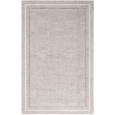 The subtle interplay of grey and ivory hues imbues any room with a serene and contemporary atmosphere. The rug's pattern, with its clean lines and bordered design, offers a visually appealing aesthetic that complements a wide range of modern decors.