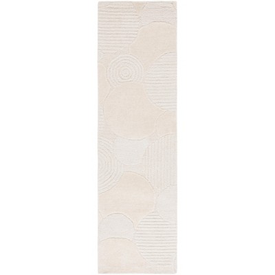 The design features an Ivory palette that brings light and warmth to any hallway, kitchen, or slender space requiring a touch of sophistication. Its plush 3/8'' pile height provides a soft underfoot experience, while the carefully hand-tufted technique ensures a dense weave for everyday use.