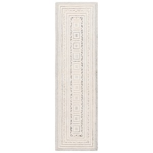 Transform your hallway with this contemporary runner rug'sized at 2'3" x 8'0". The soothing blend of ivory and grey in a geometric pattern brings a modern yet timeless appeal to any space. Crafted in India, this hand-tufted creation combines the natural beauty of wool and cotton for a comfortable and warm feel underfoot. With a height of 5/8", it adds a soft touch while the geometric design enhances visual interest. Perfect for adding a sophisticated finish to your decor, this rug will seamlessly integrate into your home, providing both style and function.