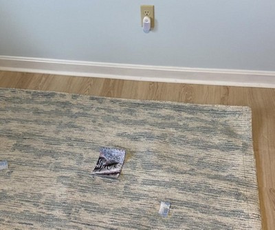 This rug is darker than it appears online and not white and light blue like I had hoped. And it smelled so badly (musty) and who knows what else, that I couldn’t even keep it in my house more than a couple hours before driving it over to my local Target and getting rid of it!!!