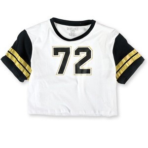Revel in the vibrancy of youth and style with the Ecko Unltd. Women's Cropped 72 Graphic T-Shirt. This modern marvel, meticulously crafted in China from 100% cotton, promises breathability coupled with impeccable style. The striking large foil-trimmed "72" graphic on the front instantly elevates your look, making a bold statement. The contrasting color of the crew neck and athletic striped short sleeves adds a dynamic edge, ensuring you're the center of attention wherever you go.