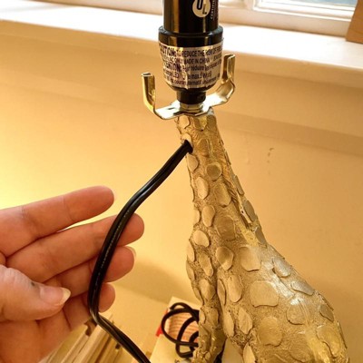 This eye catching lamp makes a charming and chic addition to your surface space and beautifully illuminate its surrounding area. Bring a finishing touch to your home with an inviting appeal with this accent table lamp. The charming and detailed structure of this giraffe polystone lamp will surely add a playful touch to any room and can blend an eclectic flair with your existing home style. Designed with felt or rubber stoppers at the base that prevent scratching furniture and table tops, as well as sliding around. Includes 1 Type A E26/Medium (Standard) bulb. This item ships in 1 carton. Comes with a 76" cord length. Suitable for indoor use only. Table lamp comes with a white drum shaped shade that measures 9 x 9 x 8 inches. Includes a rotary switch. This is a single table lamp. Eclectic style.