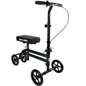 KneeRover ECONOMY KNEE SCOOTER WALKER KneeRover has been designing and developing superior, high quality knee scooter products in the USA for over 10 years. We are proud to have helped hundrThe Economy Knee Scooter Walker provides a more reliable and comfortable alternative to crutches for patients needing an effective mobility solution at an affordable price. The steerable economy knee walker knee scooter for adults for foot surgery is one of the best kneewalker values in the industry and is ideal for individuals recovering from a broken foot, broken ankle, broken leg, foot surgery, ankle surgery, leg amputation, other lower leg injuries or medical conditions like ulcers.Sturdy dual bar frame, DUAL rear on-wheel brakes and an adjustable locking handbrake deliver excellent stability and control. Ideal for indoor and outdoor use, the steerable kneeling scooter scooter walker features four smooth 7.5" diameter rubber wheels. Compatible with both the right and left legs, the KneeRover Economy Knee Scooter kneeling walker is lightweight and portable thanks to its simple folding mechanism that utilizes an easy to use thumb-release lever. Additionally, these knee walkers feature tool-free assembly and setup. Specifications: Color: Matte Black Product Weight: 21 lbs Weight Capacity: 300 lbsOverall Length: 31" Handlebar Height Range: 28.5 to 37 inches Overall Height w/handlebar folded and seat removed: 16 inch Knee Support Height Range: 16.5" - 22" Knee pad: 7" width x 12.5" length Front Axle Width: 16 inch DUAL Rear on-Wheel Brakes