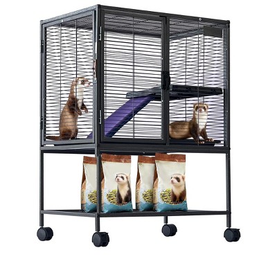 This 36" multi-level small animal cage provides a spacious, safe, and easy-to-maintain habitat for ferrets, chinchillas, rabbits, hedgehogs, hamsters, gerbils, and mice. With four tiers of climbing platforms, removable ramps, a cozy hammock, secure locking doors, excellent ventilation, and smooth-rolling caster wheels, it delivers a comfortable home for active pets while offering easy cleaning, stable mobility, and convenient bottom storage for daily use.