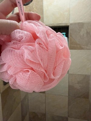 [This review was collected as part of a promotion.] These pouf sponges work just as expected and are great for shower and bath. The pouf is a nice size- not too big or small and can also be used easily by children. The handle is especially helpful while using and to hang dry. The pouf is exfoliating but not too rough on the skin. It has also held up durability-wise and has retained its netting without ripping. Emotions has remained a reliable brand throughout the years.