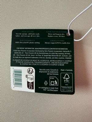 [This review was collected as part of a promotion.] I love the ecopouf, it is big, very light weight, super gentle on the skin. It creates great leather from very small amount of soap, very effective in the shower, to clean all you do is just rinse and let it dry.