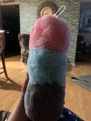 [This review was collected as part of a promotion.] I love a good shower pouf! I love that this comes in a 3 pack! My husband likes that their are more masculine colors and I, of course, love the pink! They lather up so great and dry quickly! Easy to hang in our shower. I love it!
