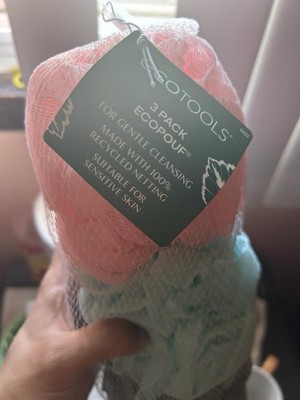 [This review was collected as part of a promotion.] Tried and true loofahs! I love the brand ecotools and use their makeup brushes as part of my everyday routine. Their products are reliable quality and those loofahs are no different. My hand shows the size is perfect it’s like a larger hand grabs worth per loofah not too big and not too small. I love the colors in this pack and that it comes with 3 so I’m more likely to change them out as opposed to use 1 for too long. It’s a comfortable texture soft yet durable. Thank you so much for the opportunity to test and review!