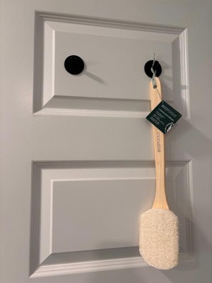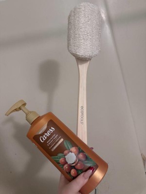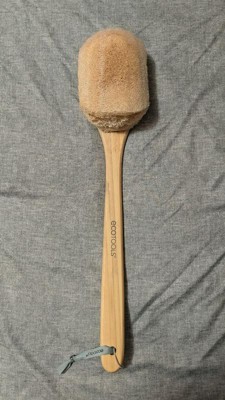 - Long handle bath brush provides better control when cleansing hard-to-reach areas