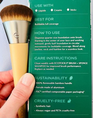 I just purchased the EcoTools Wonderful Cover Complexion Brush and so far I really like it. Its soft and dense bristles make it easier to apply my liquid foundation without having to contend with pesky brush stroke lines. The brand’s dedication to sustainability and manufacturing with eco-friendly materials and cruelty-free practices makes this a no-brainer. Since the bristles are dense, I am concerned about the ease of cleaning the brush thoroughly. I purchased the EcoTools Brush Shampoo to make sure this lovely brush works best.