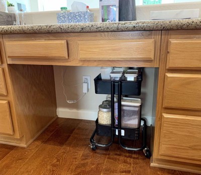 Easy to assemble, rolls well, and fits perfectly under a shorter counter in my kitchen for storing dry goods. A little spendy but it was the only thing I could find at this height.