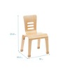 Multipurpose classroom chairs are sturdy and comfortable, designed for everyday use in daycares, and preschools, and perfect for the home. The ergonomic design encourages little ones to maintain good posture improving circulation and helping maintain focus and productivity. The stable, wide design features anti-tip-angled rear legs to help keep children safe. The vented seat back supports air circulation with built-in handles to easily re-arrange workspaces. Child-sized chairs promote student confidence and independence, and a dedicated workspace for learning encourages children to develop good work habits. Little ones take ownership of their learning as they navigate a kid-sized environment; chairs that are sized just right allow kids to enjoy a book, snack, or seated rest while feeling comfortable and confident in their bodies. When learning time is over, chairs can be pushed under kids desks or stacked for compact storage to save valuable floor space. Constructed from birch plywood that is molded into shape creating a solid natural hardwood. A durable finish seals the surface and resists scratching. A UV inhibitor helps furniture resist ultraviolet light and yellowing.