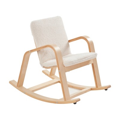 The ECR4Kids Bentwood Kid’s Rocking Chair with Cushion is a functional and sophisticated seating option for little ones. Ideal for a kids' bedroom, playroom, or classroom, the child-sized accent chair is the perfect place for kids to relax and enjoy quiet time with a blanket. The modern rocking chair is an attractive and stylish choice to work alongside your living room furniture. The soft seat cover creates a comfortable sitting spot in a reading nook for toddlers to enjoy story time with their favorite book, while gently rocking back and forth. The soothing motion of rocking can help children learn to regulate their emotions during quiet time and seated activities. Armrests offer additional stability, helping little ones support themselves as they rock. The lightweight chair can be easily moved and rearranged, allowing for flexible learning environments and varied activities. The child’s rocking chair features nylon stoppers to prevent children from rocking too forcefully, offering added stability. Constructed from birch plywood that is molded into shape creating a solid natural hardwood. A durable finish seals the surface and resists scratching. A UV inhibitor helps furniture resist ultraviolet light and yellowing.