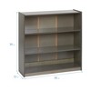A: Hello Daisy, Thank you for your interest in our Classic Birch Bookcase! The dimensions of the 36" bookcase are 36 inches long by 12 inches deep by 36 inches tall while the dimensions of the 48" bookcase are 36 inches long by 12 inches deep by 48 inches tall. The dimensions of the shelves on both bookcases are 34.75 inches long by 11 inches deep (bottom shelf 10.25 inches deep). The height of each shelf will vary depending on where they are placed as they can be adjusted in 1.25 inch increments. I do hope this information helps! If you have any additional questions, please feel free to contact our ECR4Kids customer service team at support@ecr4kids.com. Thank you, ECR4Kids