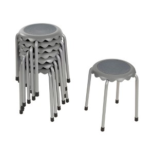 The Daisy Stackable Stool seating set is a great way to implement flexible seating to maximize space in your classroom learning environment. Great for adding extra seating anywhere, this set of eight stools adds flexibility to library spaces to accommodate small and large groups for discussions or pair with activity tables and desks for individual and collaborative work. Creative classroom seating supports different learning styles and empowers both students and teachers. Designed for everyday use in schools, homes or offices, these functional and colorful stools have a 17" chair seat height and can be used by both children and adults. These stackable stools feature a 12.4" diameter plastic seat with a rubberized top. The durable crisscross powder coated metal legs provide added strength and stability, finished with rubber glides that help protect your flooring. These lightweight chairs are easy to move making it the perfect grab-and-go stool for taking the classroom indoors and out. When learning time is over, stools can be pushed under desks or stack for compact storage to save valuable floor space. The streamlined design features rounded edges and no hard corners for safety; comes fully assembled and is maintenance-free.
