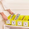 Keep folders, magazines, worksheets, and more organized with the Linking Book Bins. This 10-pack of connecting plastic storage bins keeps reading corners, playrooms, classrooms, and kids' bedrooms clutter-free. Each vertical storage bin has a deep interior to accommodate letter-sized files, folders, and books standing upright for office organization. The open design allows easy access to art materials, homework, and books facilitating quick transitions. Book tubs have interlocking sides to link multiple bins together for stability, organize neat rows, and create a customized storage system to accommodate various learning environments. Label bins to identify contents such as “homework assignments” or book genres. Introduce individualization in the classroom and personalize each student’s bin with pocket labels for easy identification, sold separately. Educators can easily move the book bins with built-in handles on the front and back allowing for easy gripping for transporting. When empty, book storage can be nested for space-saving storage and to save valuable classroom space. Book boxes are made of durable plastic that is easy to clean and designed for everyday use for classroom organization and perfect for home storage.