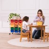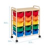 Make the most of your space and keep things tidy with ECR4Kids 15-Bin Mobile Organizer. This versatile storage solution is perfect for organizing children's bedrooms, playrooms, classrooms, or family rooms. The rolling cart with wheels provides easy access to personal items, craft supplies, and toys in colorful plastic bins. With an expansive size and modest footprint, it offers abundant storage without taking up too much floor space ideal for small spaces. This multipurpose storage cart allows children to independently select and return toys, books, or art supplies, promoting self-sufficiency and responsibility. The 15 durable plastic bins feature rounded edges and a curved interior for easy removal of classroom supplies or craft storage. Lightweight and easy to carry, the bins can be taken to the floor, activity table, or outdoors, encouraging dynamic interaction with the environment. The rolling storage cart features a top shelf for displaying personal items or for additional storage. Move the storage organizer with ease using the locking casters or attach the optional glides for stability. Pair the teacher must haves with ECR4Kids furniture pieces to complete your space for additional classroom organization, sold separately.