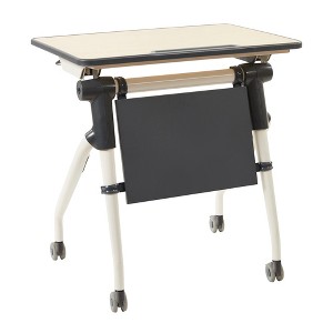 Create flexible learning spaces to maximize productivity and focus with ECR4Kids Nesting Desk. This mobile desk is great for individuals or configure multiple activity tables together for collaborative workspaces. Designed for everyday use in classrooms, lecture halls, or home learning environments, the space-saving design allows educators to configure space for the moment's needs. The foldable desktop can nest multiple desks together for vertical storage. The one-handed mechanism on either side makes it easy to flip the top up and down. Four rolling locking casters offer convenient and quick transitions between testing, classes, and more. The mobile desk allows students to work wherever they focus best. A modesty panel provides added privacy for full comfort during learning and instruction. Constructed with high-quality materials, the durable work surface features a built-in pencil groove to prevent materials from rolling off and is finished with a non-marring molded edge banding for protection against dirt and moisture.