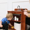 The ECR4Kids play kitchen sink is designed to encourage aspiring chefs to express their creativity and explore new ways to play. Kitchen sets for kids encourage social interaction which is crucial for cognitive and emotional growth, supporting language and empathy through interactive play. Toddlers practice sharing, problem-solving among peers, and communicating ideas. The kid’s kitchen playset contains realistic features including a chrome-looking swivel gooseneck faucet, turning knobs, sink, and working spray head. The high-arc faucet gives children more room to interact. The removable sink can be taken out to wipe down and clean. Internal shelves provide ample space to store toy foods, dishes, pots and pans, and kitchen accessories; encouraging children to keep their space clean and organized. Designed to withstand endless hours of play in a daycare, preschool, or home. The sturdy wooden kitchen features rounded edges and full-length piano hinges to protect little fingers from getting pinched and allows the doors to open completely and lay flat against the unit. Handle cutouts create an easier opening for small hands and magnetic closures keep doors safely closed. Pair with ECR4Kids refrigerator, stove, and cupboard to complete the set; sold separately.