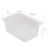 Keep your classroom and home organized, tidy, and efficient with ECR4Kids Scoop Front Storage Bins. The sturdy plastic bins are designed for everyday use to keep small items contained off the floor. Teachers, educators, and parents can utilize bins to store books, toys, manipulatives, and games. The open bin design displays and provides easy access to contents. Organize stories and label bins by reading level, theme, or holiday, encouraging children to independently select their favorite story and clean up during playtime. Personalize trays in classroom cubbies for children to store art projects, individual items, homework, and more. The Scoop Front Bins provide a flexible storage solution with endless possibilities for use from the garage to the kitchen pantry, or nursery. Durable plastic bins feature rounded edges, an easy-to-grasp scoop front handle, and a curved interior to simply remove contents. Lightweight bins are easy to pick up and carry, transporting from a storage cabinet to a play space. Bins nest to save space, and built-in stack supports prevent locking when empty. Use as standalone storage or pair with ECR4Kids storage lockers, cubby units, or tray cabinets; sold separately.