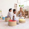 Create a cozy reading nook with ECR4Kids SoftZone Colorful Stump Stools. This 3-piece seating set comes in graduated heights, making it easy to implement flexible seating, and create interactive learning circles or quiet reading corners. Little learners can easily carry these lightweight ottomans to their favorite spot and circle up for story time or snacks. The seating surface can be used as an extra chair or a low-to-the-ground table surface. This kids’ foam block set is also a great way to introduce toddlers to physical play while encouraging collaboration and gross motor skill development. The options are limitless for kids to explore, including stepping onto different heights, pulling themselves up, and creating a fun obstacle course using their imagination. Designed for everyday use in a daycare, preschool, and classroom, perfect for the home. The foam core is covered with water-resistant polyurethane vegan leather with a durable woven backing and features a non-slip base for added stability. Fully stitched seams and soft edges make this seating set safe for children. Shapes are lightweight and easy to carry allowing parents, teachers, and caregivers to quickly set up, pieces nest and stack for convenient space-saving storage.