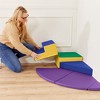 ECR4Kids SoftZone Junior Adventurer's Summit Step Corner Climber will spark imagination in little explorers as they climb and slide on the foam playset. The mini 4-piece set includes one pedestal, one step, one side mat, and one corner pad, all purposefully designed for indoor active play. Transform any home or playroom by assembling pieces with stay-put fasteners. Designed for use in a corner of a room for safe play, this climber fosters early muscle development, coordination, balance, and overall body control. Little hands and feet will be encouraged to explore, relax on the platform, step up, or play on the corner pads with confidence. Allow multiple kids to play simultaneously, cultivate a collaborative environment while encouraging socialization. The pieces can be used independently or attach the step and pedestal together to create a 2-piece beginner climber against a wall for additional support. The playset is lightweight and easy to carry, enabling quick setup and stacks for space-saving storage. The set’s foam core is encased in water-resistant polyurethane vegan leather with a durable woven backing, complete with a non-slip base for stability. Fully stitched seams and soft edges ensure the climber remains a trusted choice for children.
