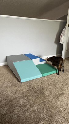 Young crawlers will have fun playing and exploring on the SoftZone Junior Little Me Corner Climber. The beginner climber includes a step, ramp, pedestal, and pad with endless opportunities for climbing, crawling, and social interaction. Scaled down in size, this mini foam playset is great for daycares, apartment homes, and smaller playrooms. With adult supervision, this playset is intended for use in a corner of a room for safe play that promotes and strengthens early muscle movement, enhances physical coordination, and balance, and helps overall body control. The climber keeps curious babies active and engaged while encouraging little hands and feet to explore the gentle foam climbing structure. The small foam shapes can be used independently or as a part of a fun obstacle course. As young children explore, they gain self-confidence while improving hand-eye coordination, agility, and core strength. Soft blocks are lightweight allowing parents and teachers to move and stack for space-saving storage. The foam core of each piece is covered with water-resistant polyurethane vegan leather with a durable woven backing and features a non-slip base for added stability. Fully stitched seams and soft edges make this play set safe for children.