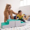 Little climbers will develop important gross motor skills as they move and play on the SoftZone Junior Mix n' Match Steps. This mini two-piece playset is great for daycares, apartment homes, and smaller playrooms. With endless possibilities for play, this set promotes and strengthens early muscle movement, enhances physical coordination, and balance, and helps overall body control. The soft climbing structure keeps curious babies active and engaged while encouraging little hands and feet to climb and explore the gentle foam climbing steps. Little ones can pull up, crawl, or step on top and safely back down. Stairs can be used independently, as a part of a fun obstacle course, or against a wall for additional support. As young children explore, they gain self-confidence while improving hand-eye coordination, agility, and core strength. Shapes are lightweight and easy to carry allowing parents, teachers, and caregivers to quickly set up; pieces nest and stack for convenient space-saving storage. The foam core of each piece is covered with water-resistant polyurethane vegan leather with a durable woven backing and features a non-slip base for added stability. Keep playtime open-ended by creating configurations with any ECR4Kids SoftZone Junior Mix n’ Match Collection pieces, all sold separately.