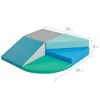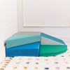 Give your little ones an exciting twist on play with the SoftZone Junior Tiny Twisting Corner Climber. The beginner climber includes tiered steps, a ramp, a pedestal, and a pad with endless opportunities for climbing, crawling, and social interaction. Scaled down in size, this mini foam playset is great for daycares, apartment homes, and smaller playrooms. With adult supervision, this playset is intended for use in a corner of a room for safe play that promotes and strengthens early muscle movement, enhances physical coordination, and balance, and helps overall body control. The climber keeps curious babies active and engaged while encouraging little hands and feet to explore the gentle foam climbing structure. The small foam shapes can be used independently or as a part of a fun obstacle course. As young children explore, they gain self-confidence while improving hand-eye coordination, agility, and core strength. Soft blocks are lightweight allowing parents and teachers to move and stack for space-saving storage. The foam core of each piece is covered with water-resistant polyurethane vegan leather with a durable woven backing and features a non-slip base for added stability. Fully stitched seams and soft edges make this play set safe for children.