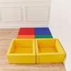 The ECR4Kids Play Patch Activity Mat with Toy Bins are the perfect toddler square mats and storage boxes designed to spark creativity, promote early development, and keep playtime organized in a playroom, daycare, or preschool. The 4-pack of floor mats offers a soft and inviting surface for babies and toddlers to explore, learn, and have fun. Tummy time helps strengthen neck and shoulder muscles while encouraging sensory exploration. As children grow, the mats become the canvas for imaginative play. The included soft storage bins encourage early organization skills and responsibility, as kids learn to clean up after themselves by putting foam climbing blocks, stuffed animals, and play room essentials away. Keep playtime open-ended by creating multiple configurations; build a cozy reading nook in a corner, play space in the center of the room, or configure each sensory bin around the mat, constructing an enclosed baby playpen. Transportable and lightweight, the foam play mats and bins are perfect for adventures outside the home. The foam core is covered with water-resistant polyurethane vegan leather with a durable woven backing and mats feature a non-slip base for added stability. Fully stitched seams and soft edges make this soft play set safe for children.