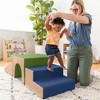 Take playtime to new heights with ECR4Kids SoftZone Single Tunnel Climber. The beginner climber includes tiered steps, a tunnel, and a ramp with endless opportunities for climbing, crawling, and social interaction. The foam playset is designed for everyday use in daycares, and preschools, and is great for the home. This 3-piece climber is intended for safe play that promotes and strengthens early muscle movement and enhances physical coordination, balance, and overall body control. The climber keeps curious babies active and engaged while encouraging little hands and feet to explore the gentle foam climbing structure. Children can step up the stairs, climb over or through the tunnel, and slide back down. When pieces are assembled, multiple children can play at once encouraging a collaborative environment. The small shapes can be used independently or as a part of a fun obstacle course. As children explore, they gain self-confidence while improving hand-eye coordination, agility, and core strength. Lightweight blocks are easy to carry allowing parents, teachers, and caregivers to quickly set up and stack for space-saving storage. The foam core of each piece is covered with water-resistant polyurethane vegan leather with a durable woven backing and features a non-slip base for added stability.
