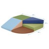 Give your little ones an exciting twist on play with the SoftZone Tiny Twisting Corner Climber. The beginner climber includes tiered steps, a ramp, a pedestal, and a pad with endless opportunities for climbing, crawling, and social interaction. Foam playset is designed for everyday use in daycares, and preschools, and is great for the home. With adult supervision, this 5-piece climber is intended for use in a corner of a room for safe play that promotes and strengthens early muscle movement, enhances physical coordination, and balance, and helps with overall body control. The climber keeps curious babies active and engaged while encouraging little hands and feet to explore the gentle foam climbing structure. The small shapes can be used independently or as a part of a fun obstacle course. As young children explore, they gain self-confidence while improving hand-eye coordination, agility, and core strength. Lightweight blocks are easy to carry allowing parents, teachers, and caregivers to quickly set up and stack for space-saving storage. The foam core of each piece is covered with water-resistant polyurethane vegan leather with a durable woven backing and features a non-slip base for added stability. Remove shoes to help preserve the longevity of the products.